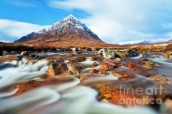 Dramatic Buachaille Etive Mor and River Coupall Glen Coe after early morning winter snow Scottish Highlands, UK ... more